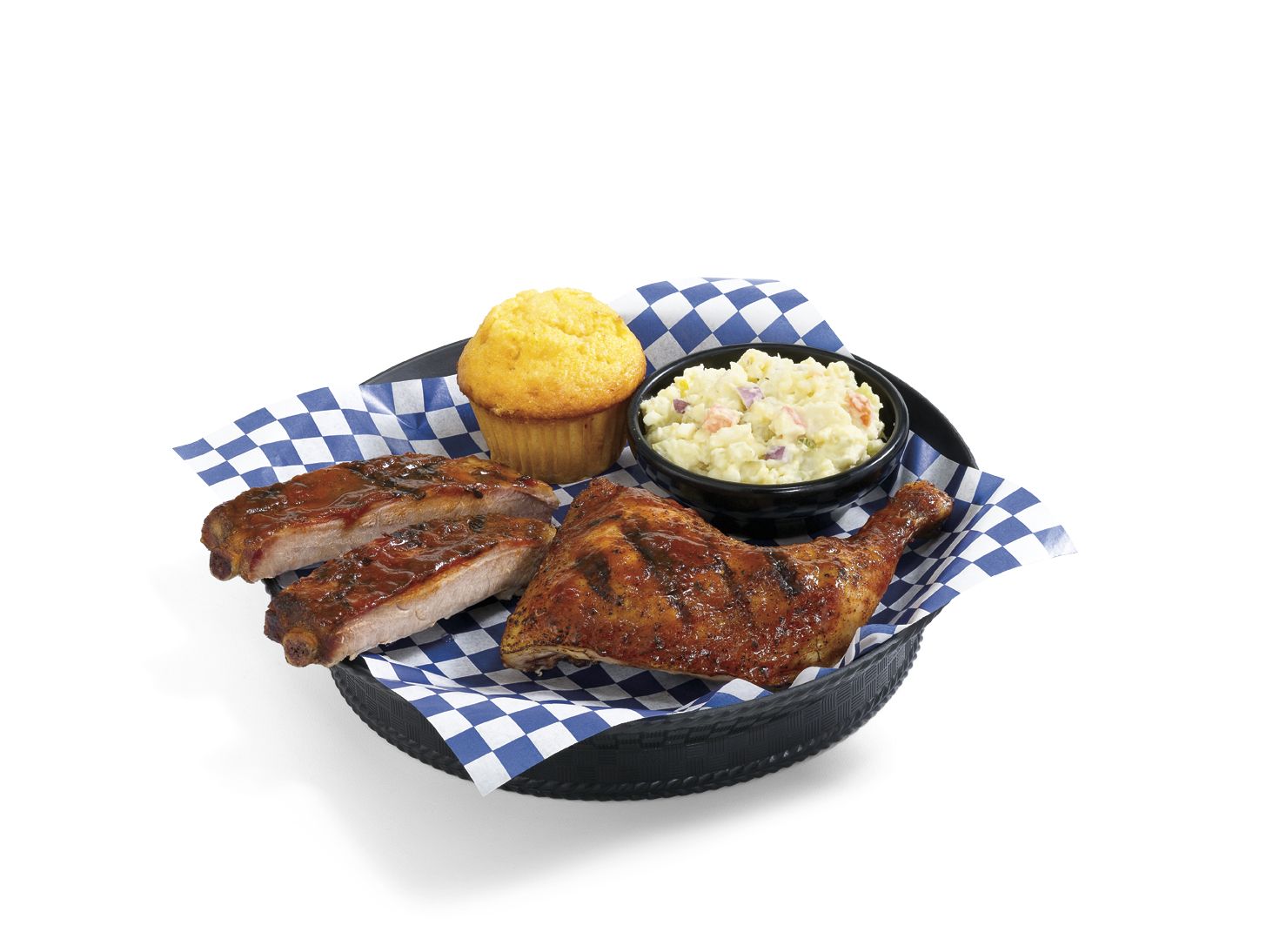 Served with choice of two sides and a Corn Bread Muffin. Add a cup of Soup, Chili, Side Salad or Loaded Baked Potato for 3.29.