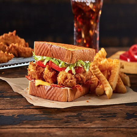 Served with choice of side and a 22oz. drink.